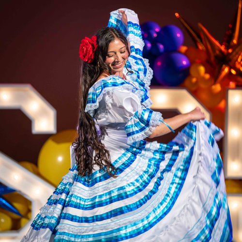Abby’s technical and artistic development continued through intensive study with Danzantes Unidos Workshops and the Centro Mexicano de la Danza, where she deepened her knowledge of regional styles, choreography, and pedagogical methodology. She now applies this experience to design high-expectation training programs, develop dancers across all levels, and direct performances that honor the depth and regional precision of Mexican folklórico.